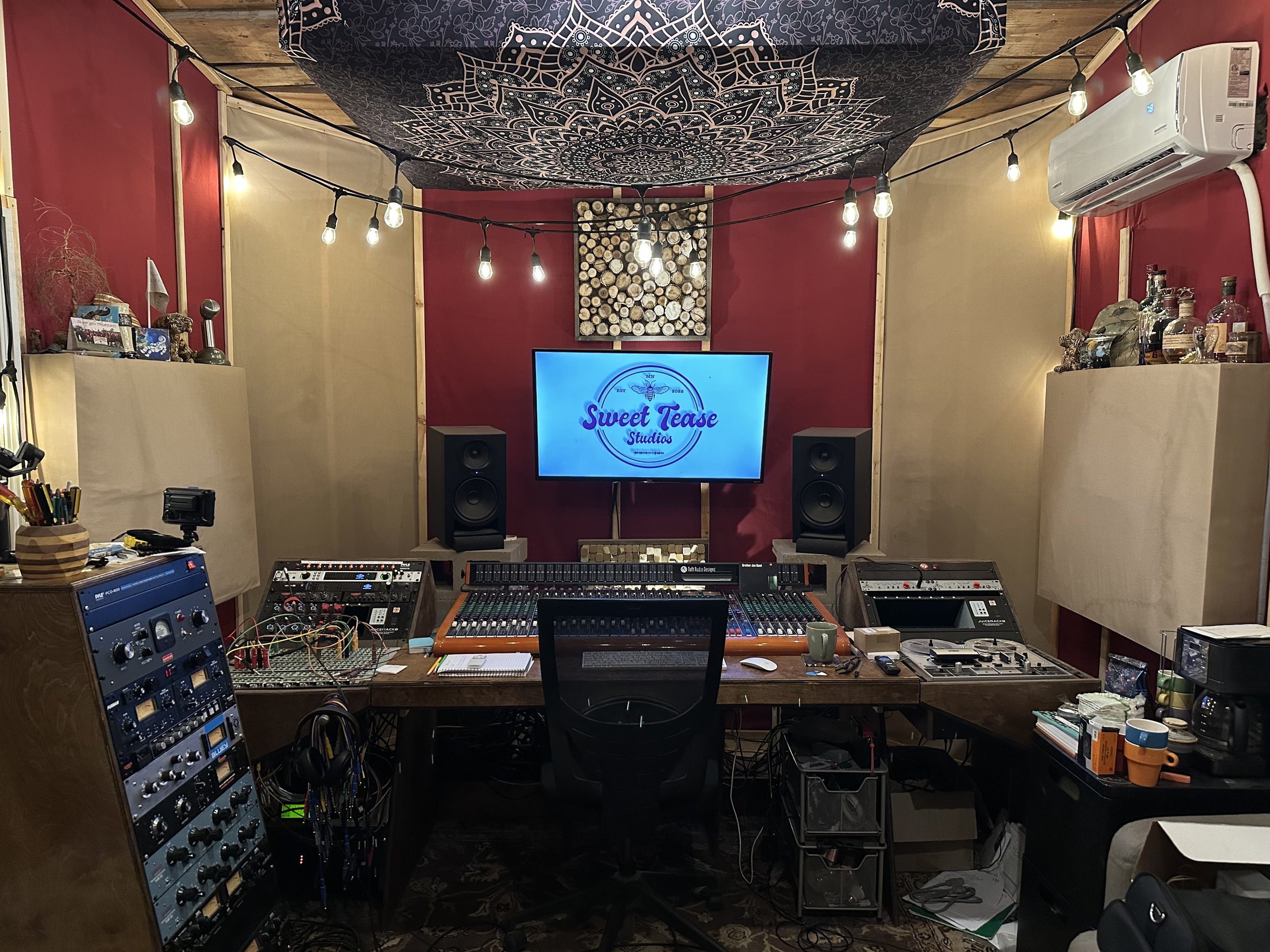 Sam’s lifetime love for music led him to pursue a degree in the audio arts and graduate in 2019 with a B.S. in Audio Production/Music industry after attending McNally Smith, Mankato State University, and Hennepin Technical College. Sam built Sweet Tease Studios from the ground up in 2022 with the intent to provide an inviting and comfortable environment to create. You can find Sweet Tease Studios tucked away in the beautiful pines of the northwest burbs of Minneapolis, Minnesota.